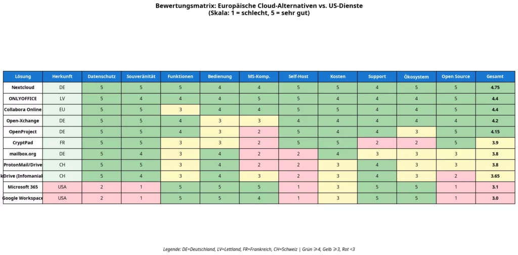 Bild: Vergleich von europäischen Alternativen zu google/Microsoft