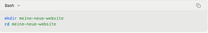 to copy: mkdir meine-neue-website cd meine-neue-website