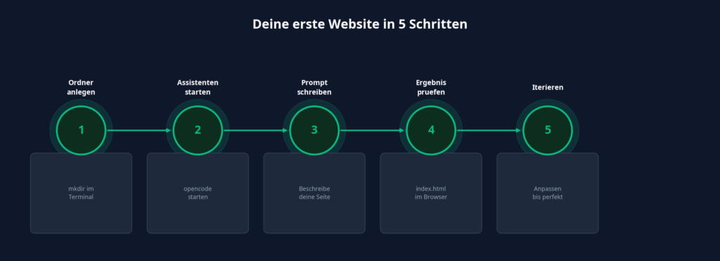 Jetzt kommt der wichtigste Teil: Du musst deinem Assistenten genau sagen, was du willst. Ein guter „Prompt“ (Anweisung) ist das halbe Leben. Schreibe im OpenCode-Chat (oder CLI) etwas wie: